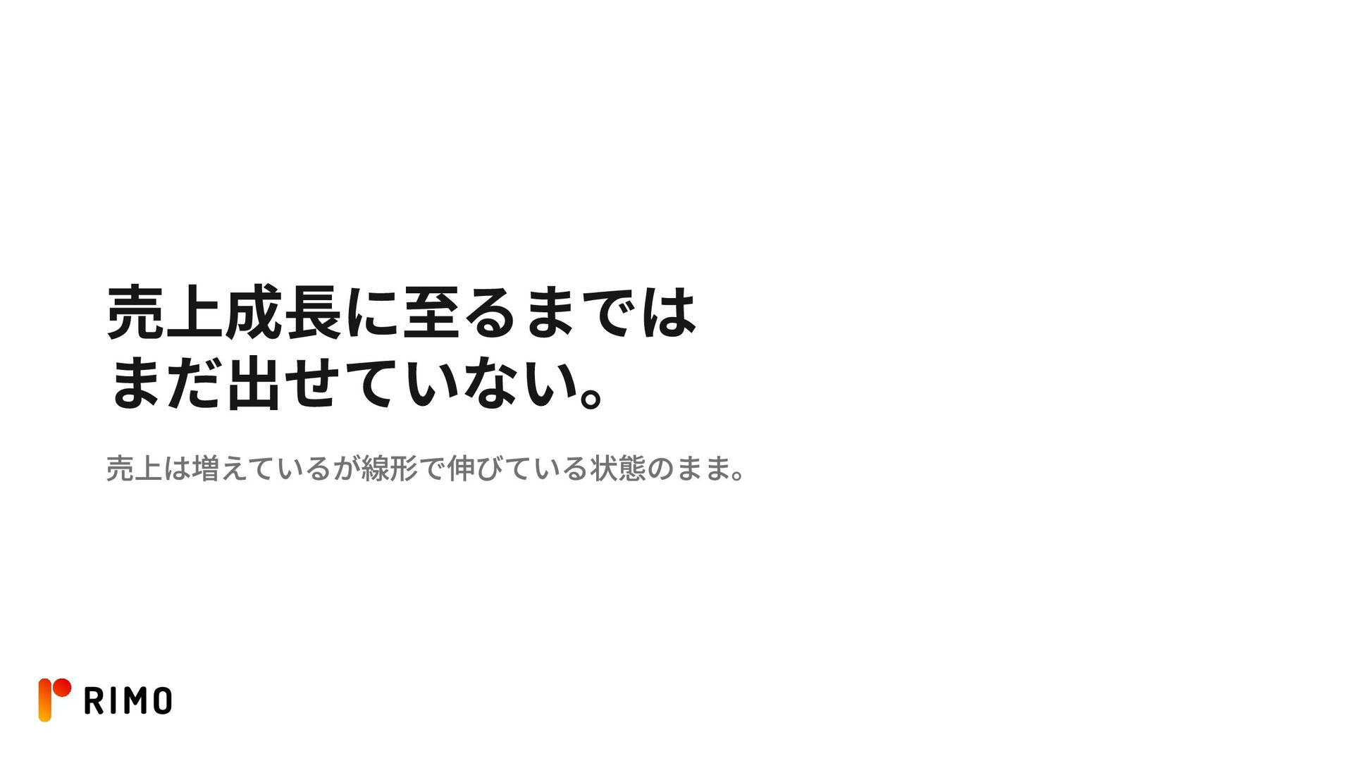 売上成長に至るまでは まだ出せていない。 売上は増えているが線形で伸びている状態のまま。