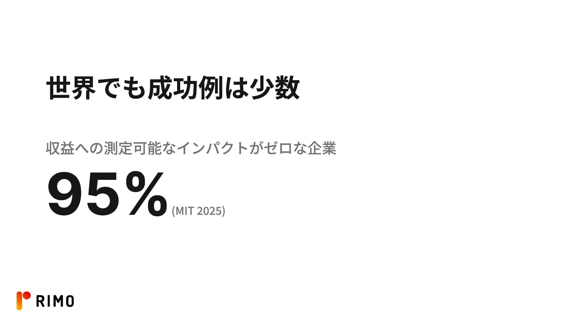 世界でも成功例は少数 収益への測定可能なインパクトがゼロな企業 95% (MIT 2025)