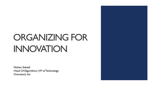 Innovation is rarely accidental. Most successful innovation comes from an organizational culture and structured designed for it. In this talk we will look into some culture and practices that aid innovation in organizations.