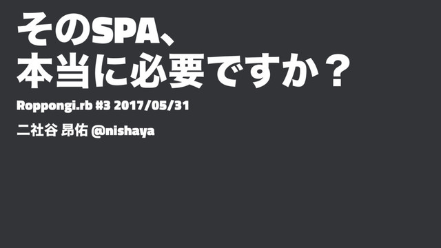 ͦͷSPAɺ ຊʹඞཁͰ͔͢ʁ Roppongi.rb #3 2017/05/31 ೋࣾ୩ ߉༎ @nishaya