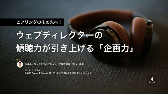 2024年10月12日(土)に開催されたSaCSS Season2 Special 07で登壇した際のスライド資料です。 良い企画を作るために欠かせないヒアリングの大切さと、そこから生まれるアイディアについてお話しました。
