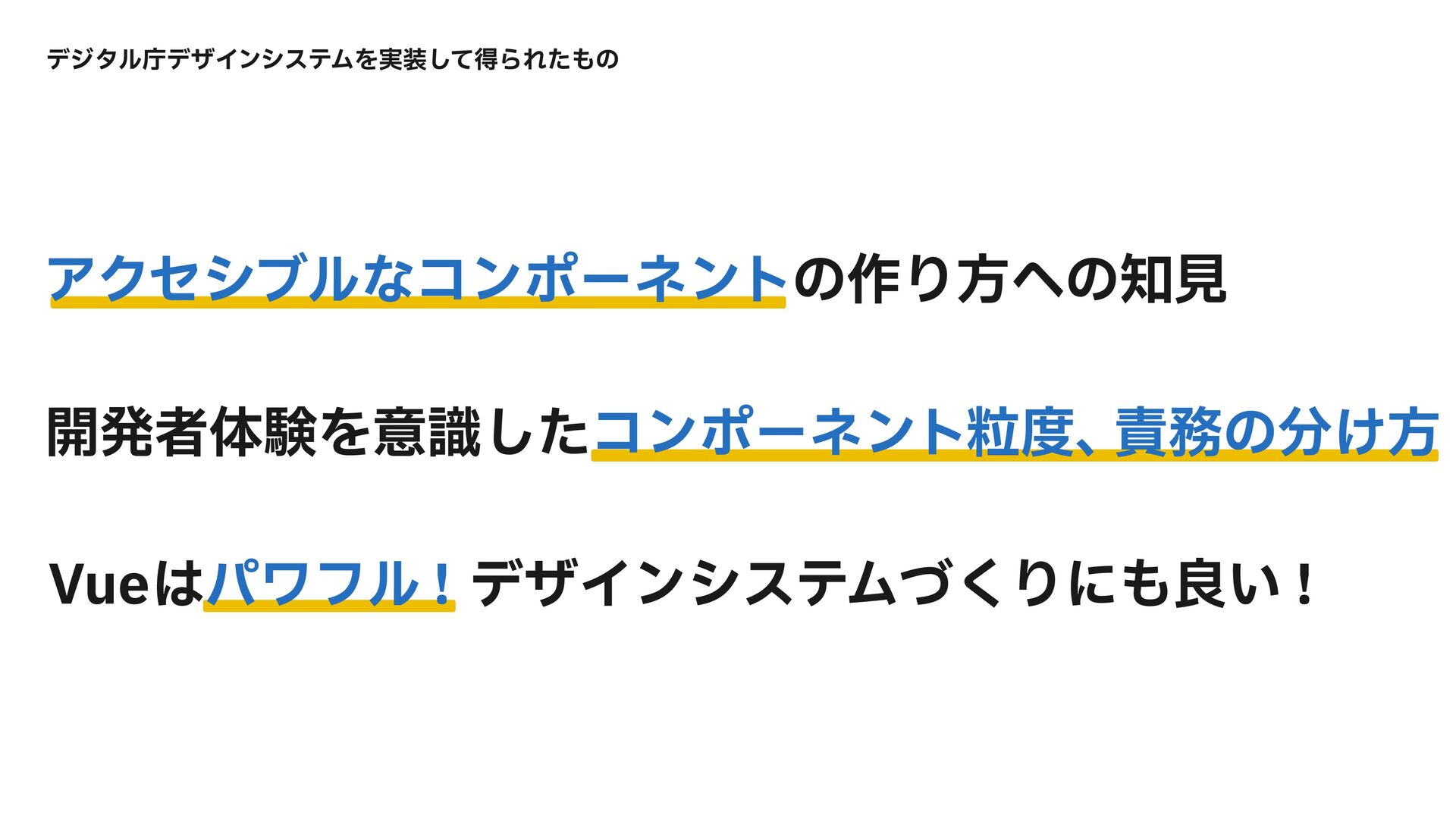 デジタル庁が公開しているデザインシステムをVue.jsで実装した話です。デザインシステムを作っていく中で感じた強力なv-modelやcomputedの魅力などをお伝えします。