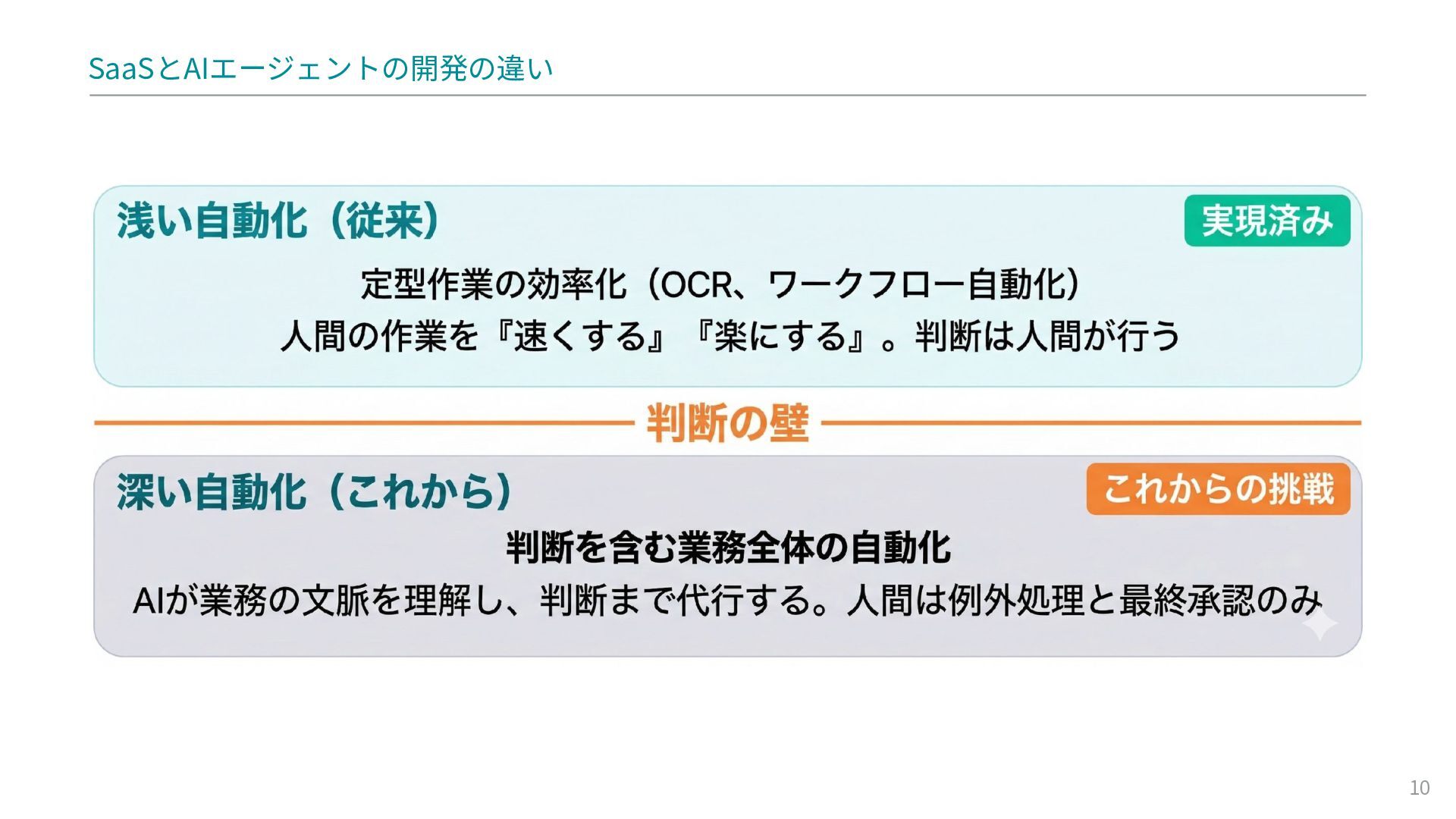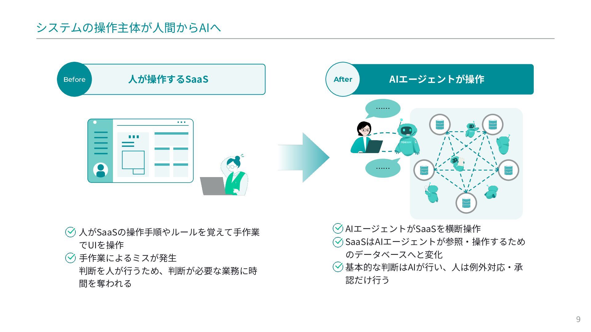 パラダイムシフト: SaaSの操作主体が人間からAIに変わり、「作業の効率化」から「判断の自動化」へ移行
