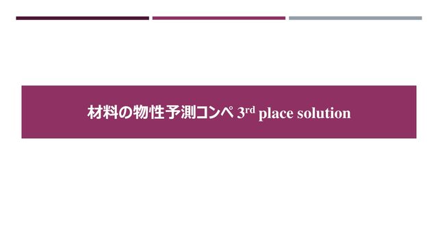 Summary Lattice abc : 3.912223 3.912223 3.912223 angles : 90.0 90.0 90.0 volume : 59.878485316366636 A : 3.912223 0.0 2.395545687250328e-16 B : 6.291334416885879e-16 3.912223 2.395545687250328e-16 C : 0.0 0.0 3.912223 PeriodicSite: V (0.0000, 0.0000, 0.0000) [0.0000, 0.0000, 0.0000] PeriodicSite: Os (1.9561, 1.9561, 1.9561) [0.5000, 0.5000, 0.5000] PeriodicSite: O (1.9561, 1.9561, 0.0000) [0.5000, 0.5000, 0.0000] PeriodicSite: O (1.9561, 0.0000, 1.9561) [0.5000, 0.0000, 0.5000] PeriodicSite: O (0.0000, 1.9561, 1.9561) [0.0000, 0.5000, 0.5000] (V, Os, O) 例 例 Composition object Structure object ・原子の物性に関する特徴量 ・酸化に関する特徴量 ・原子の組成比に関する特徴量 ・価数に関する特徴量 ・イオン物性に関する特徴量 ・密度に関する特徴量 ・配位数に関する特徴量 ・近隣原子との物性の違いに関する特徴量 ・構造の不均一性に関する特徴量 ・化学的規則性に関する特徴量 ・原子充填率に関する特徴量 400個弱の 特徴量を作成 * https://hackingmaterials.lbl.gov/matminer/index.html https://www.sciencedirect.com/science/article/abs/pii/S0927025618303252?via%3Dihub Matminer:材料の組成や構造の情報から特徴量を生成できるライブラリ