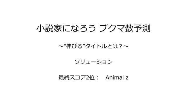 小説家になろう ブクマ数予測 〜”伸びる”タイトルとは?〜 ソリューション 最終スコア2位: Animal z