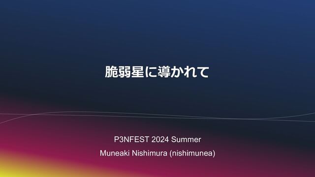 脆弱星に導かれて P3NFEST 2024 Summer Muneaki Nishimura (nishimunea)