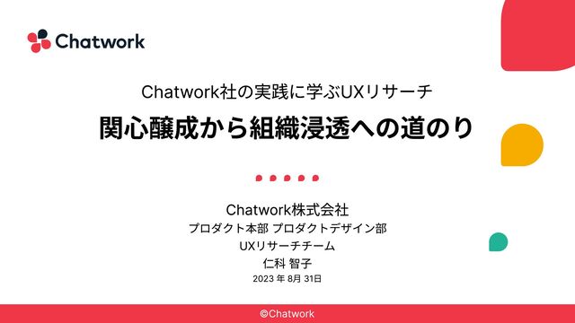 プラットフォーム化を目指しています 導入社数は41万社*3 を突m ビジネス コミュニケーションの変化を加速 ÷ *1 Chatworkセグメント以外の事業として、ESET社提供のセキュリティ対策ソフトウェア「ESET」の代理販売事業を 展開。安定的な収益貢献となってい¨ ÷ *2 Nielsen NetView 及びNielsen Mobile NetView Customized Report 2022年5月度調べ月次利用者(MAU:Monthly Active User)調査。 調査対象はChatwork、Microsoft Teams、Slack、LINE WORKS、Skypeを含む47サービスを Chatwork株式会社にて選定Ý ÷ *3 2023年6月末時点