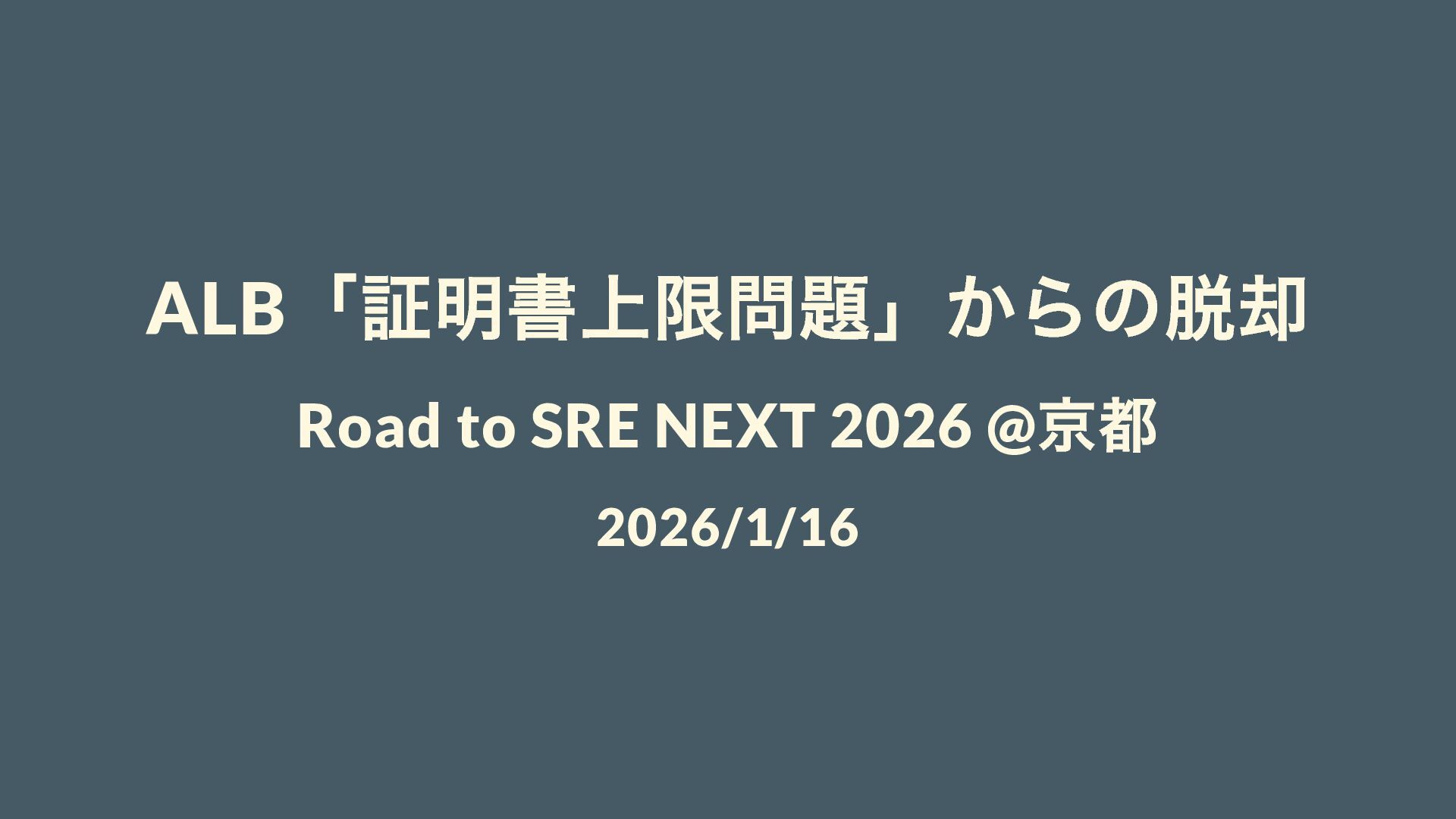 ALB 「証明書上限問題」からの脱却 Road to SRE NEXT 2026 @ 京都 2026/1/16