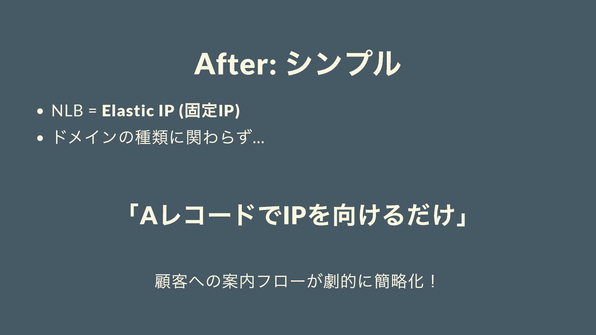 After: シンプル NLB = Elastic IP ( 固定IP) ドメインの種類に関わらず… 「A