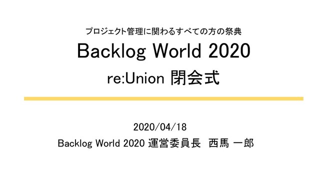 プロジェクト管理に関わるすべての方の祭典 Backlog World 2020 re:Union 開会式 Backlog World 2020 運営委員長 西馬