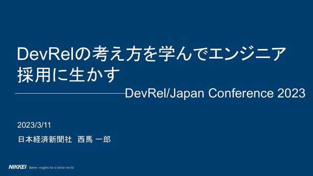 DevRel/Japan CONFERENCE 2023で登壇したときの発表スライドです(2023/03/11) #devreljp 。「DevRelの考え方を学んでエンジニア採用に生かす」というタイトルです