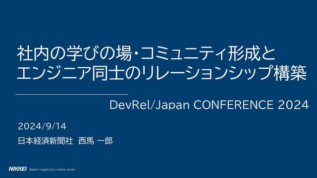「社内の学びの場・コミュニティ形成とエンジニア同士のリレーションシップ構築」というタイトルで発表します #devreljp DevRel/Japan CONFERENCE 2024での発表スライドです