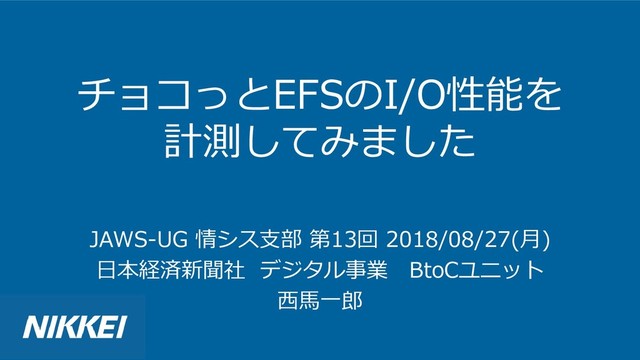 チョコっとEFSのI/O性能を 計測してみました JAWS-UG 情シス支部 第13回 2018/08/27(月) 日本経済新聞社 デジタル事業 BtoCユニット 西馬一郎