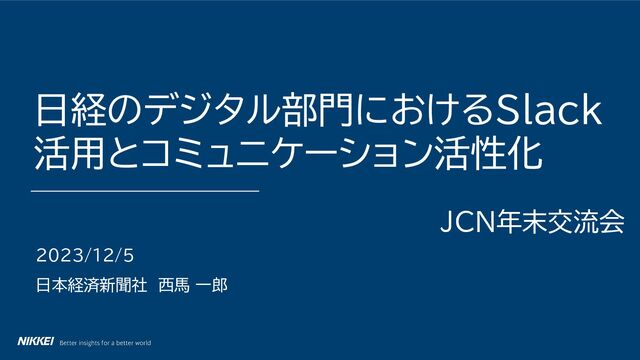 2023/12/5 日本経済新聞社 西馬 一郎 日経のデジタル部門におけるSlack 活用とコミュニケーション活性化 JCN年末交流会