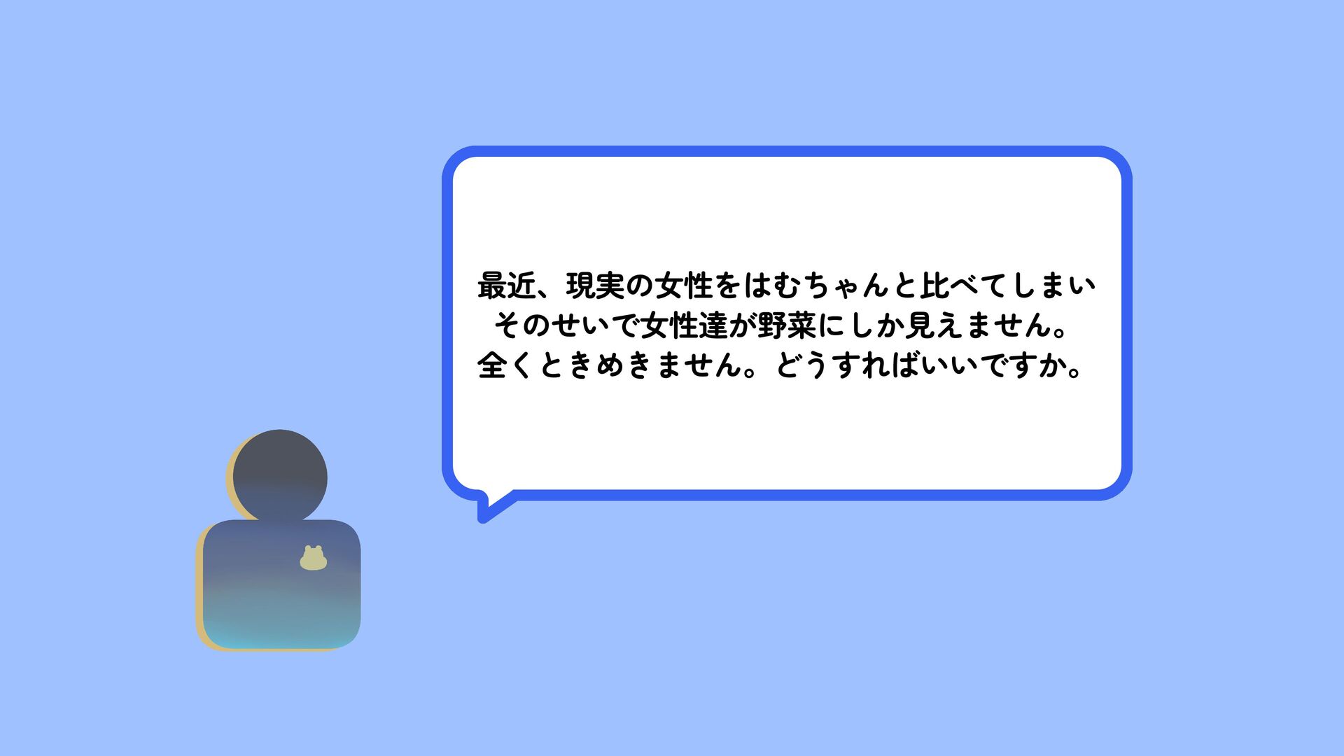 最近、現実の女性をはむちゃんと比べてしまい そのせいで女性達が野菜にしか見えません。 全くときめきません。どうすればいいですか。