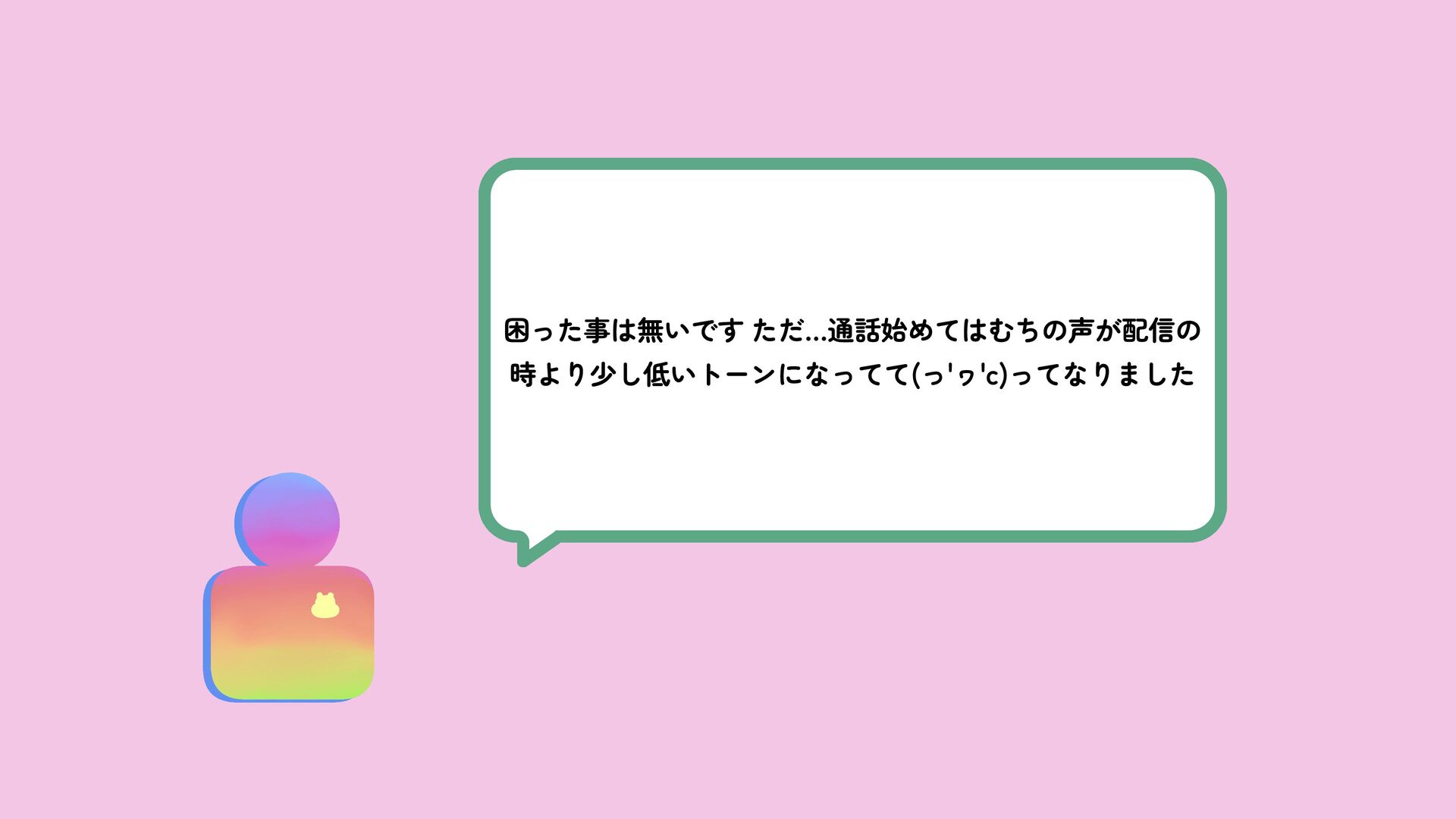 困った事は無いです ただ…通話始めてはむちの声が配信の 時より少し低いトーンになってて(っ'ヮ'c)ってなりました