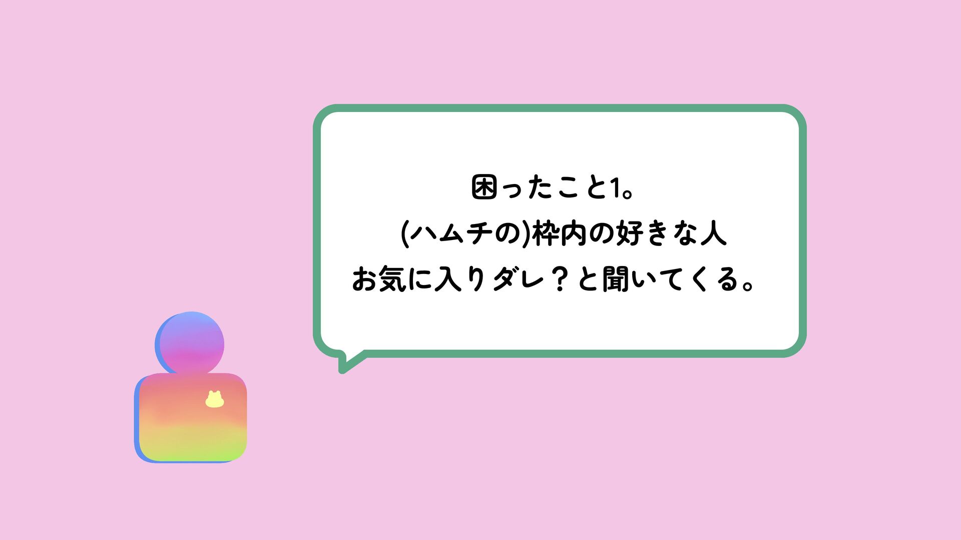 困ったこと1。 (ハムチの)枠内の好きな人 お気に入りダレ?と聞いてくる。