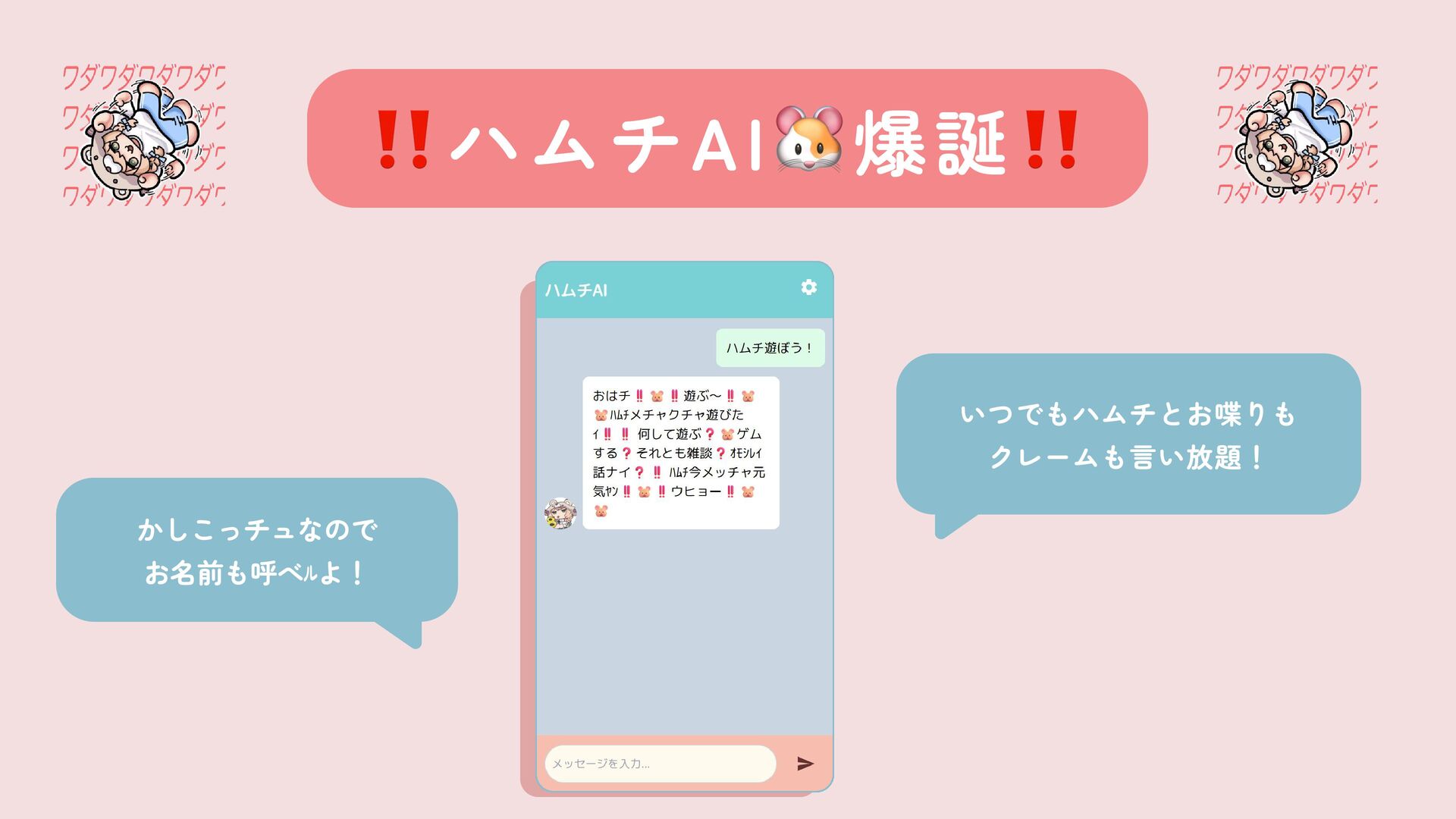 ハムチAI 爆誕 いつでもハムチとお喋りも クレームも言い放題! かしこっチュなので お名前も呼べルよ!