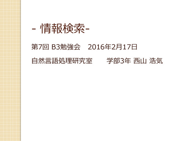 文書数n = 5のときのidf の計算 ◦ Idf 言語 = log (5 / 2) = 0.40 例:t= 「言語」の文書1における重要度の計算 ◦ tf × idf = 2 × 0.40 = 0.80 語 t 文書頻度d IDF 文書1 文書2 文書3 文書4 文書5 言語 2 0.40 2, 0.80 0, 0.00 1, 0.40 0, 0.00 0, 0.00 コンピュータ 3 0.22 1, 0.22 1, 0.22 0, 0.00 0, 0.00 2, 0.44 問題 4 0.10 2, 0.20 2, 0.20 3, 0.30 1, 0.10 0, 0.00 情報 3 0.22 0, 0.00 1, 0.22 2, 0.44 1, 0.22 1, 0.22
