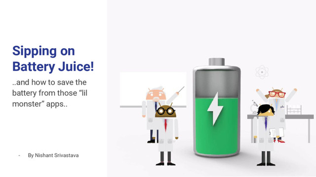 devices, sensors ,camera, CPU, GPU RAM, Storage, A/V Decoders, Speakers - Moore’s Law is not applicable to battery capacity ...yet.. - Demand for more performance or less power consumption is driven by use cases Network Calls - Analytics, fetching big chunks of data frequently , data sync, ad networks Location and Sensors - Always on, highest accuracy , maximum rate Inefficient code - Bad data structures, useless complexity in code paths.