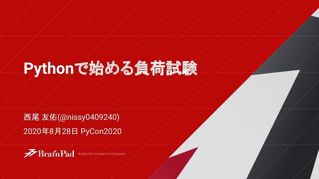 西尾 友佑(@nissy0409240) 2020年8月28日 PyCon2020 Pythonで始める負荷試験