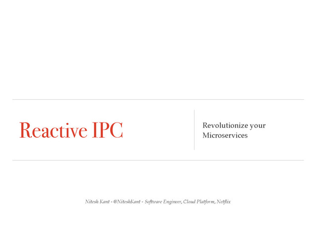 Load balancing: https://github.com/Netflix/ocelli Server as a function: http://monkey.org/~marius/funsrv.pdf Fallacies of distributed computing: en.wikipedia.org/wiki/ Fallacies_of_distributed_computing#The_fallacies Nitesh Kant @NiteshKant