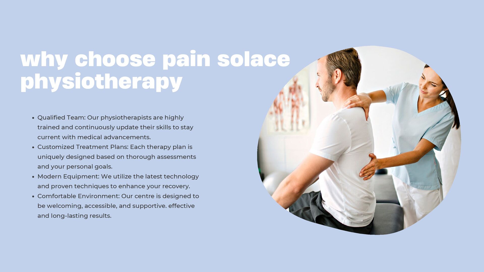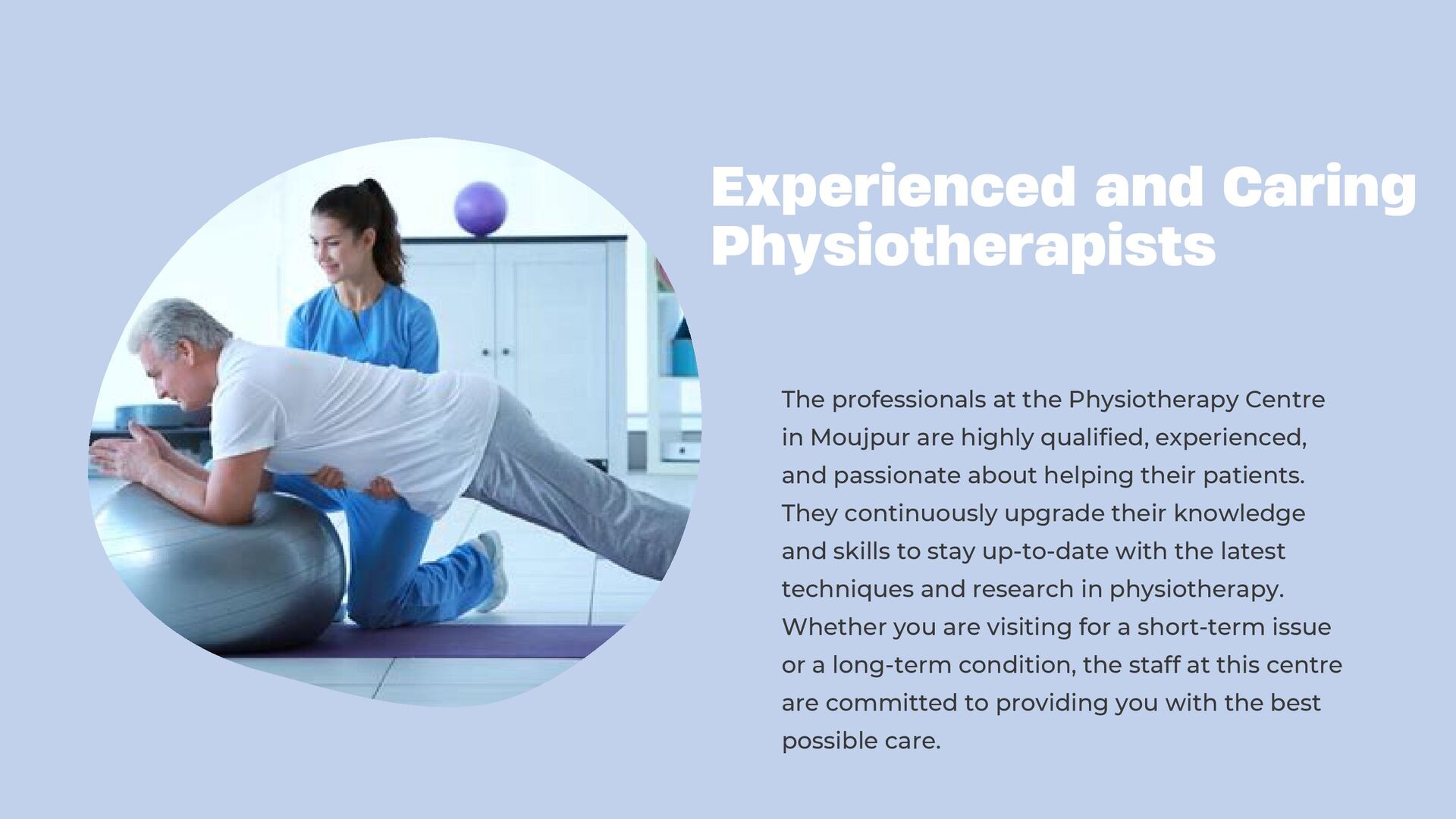 A Trusted Physiotherapy Centre we are dedicated to helping you live a healthier, pain-free life through expert physiotherapy services. Whether you're recovering from an injury, managing a chronic condition, or striving to improve your physical performance, our experienced team of licensed physiotherapists is here to guide you every step of the way.