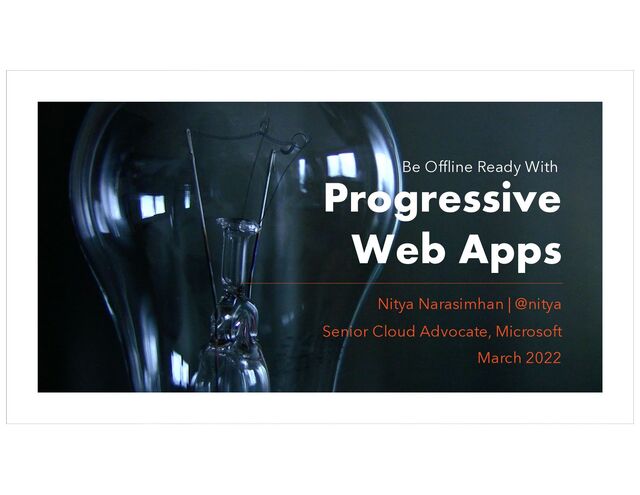 Progressive Web Apps are traditional web apps that are progressively enhanced to deliver richer experiences (comparable to platform-native apps) on more capable devices. In this workshop, we'll walk through the core concepts of Progressive Web Apps, learn about development tools we can use to simplify our build-deploy workflows, and walk through the steps of enhancing an existing web app to support desirable PWA characteristics.