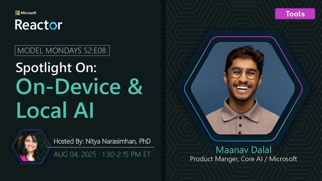 On-device inference is critical if you want to run AI models locally, on your own hardware, e.g., for edge computing needs. Join as as we talk to Maanav Dalal about Foundry Local – a solution built on ONNX Runtime (for use in CPUs, NPUs & GPUs) & taking you from prototype to production.