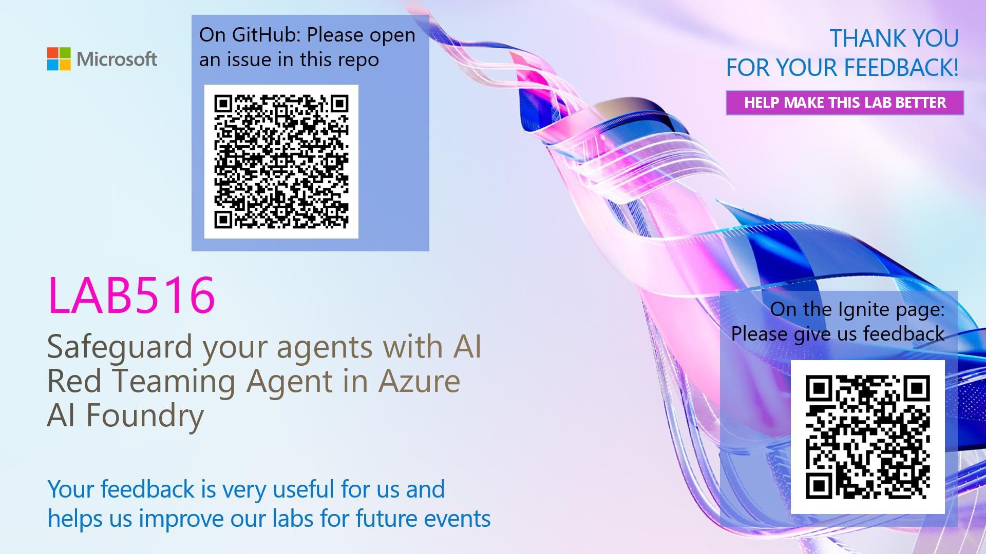 https://github.com/microsoft/ignite25-LAB516-safeguard-your-agents-with-ai-red-teaming-agent-in-microsoft-foundry