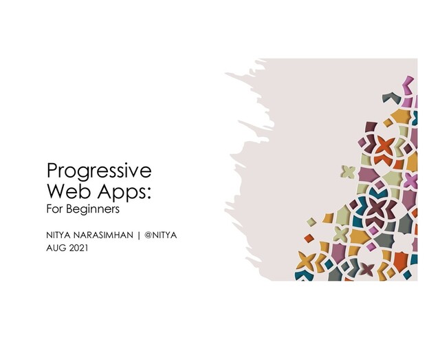 An introduction to Progressive Web Apps from concepts to code, looking at key PWA requirements (installability, reliability, capability) and walking through the PWABuilder tools and ecosystem for quickstart.