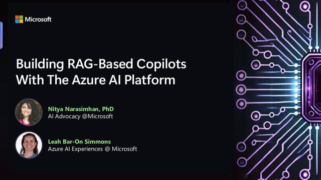 RAG (Retrieval Augmented Generation) is the most common approach used to get LLMs to answer questions grounded in a particular domain's data. Learn how to build a RAG-based custom copilot end-to-end using Azure AI Studio, code-first. We'll walk through "Contoso Chat", a retail copilot scenario with product and customer data. We'll explore prompt engineering using prompty assets, orchestration with promptflow flex-flows and automated provisioning and deployment with azd. You'll learn how to build & test your copilot locally (in VS Code), then deploy & test it in production on Azure.