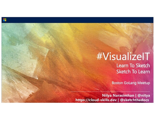 Creativity enhances communication and builds meaningful connections that will help us consume, retain, and recall, information better. This is the core premise and message behind “VisualizeIT” – a talk that is meant to motivate you to think about visual storytelling in tech contexts, not just to make complex technology concepts feel more familiar, but to enhance the learning journey for the 65% of us who are visual learners.