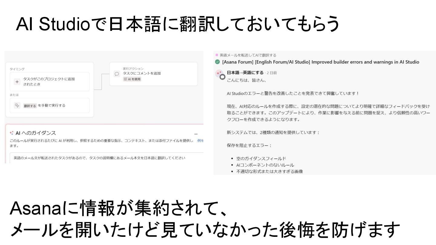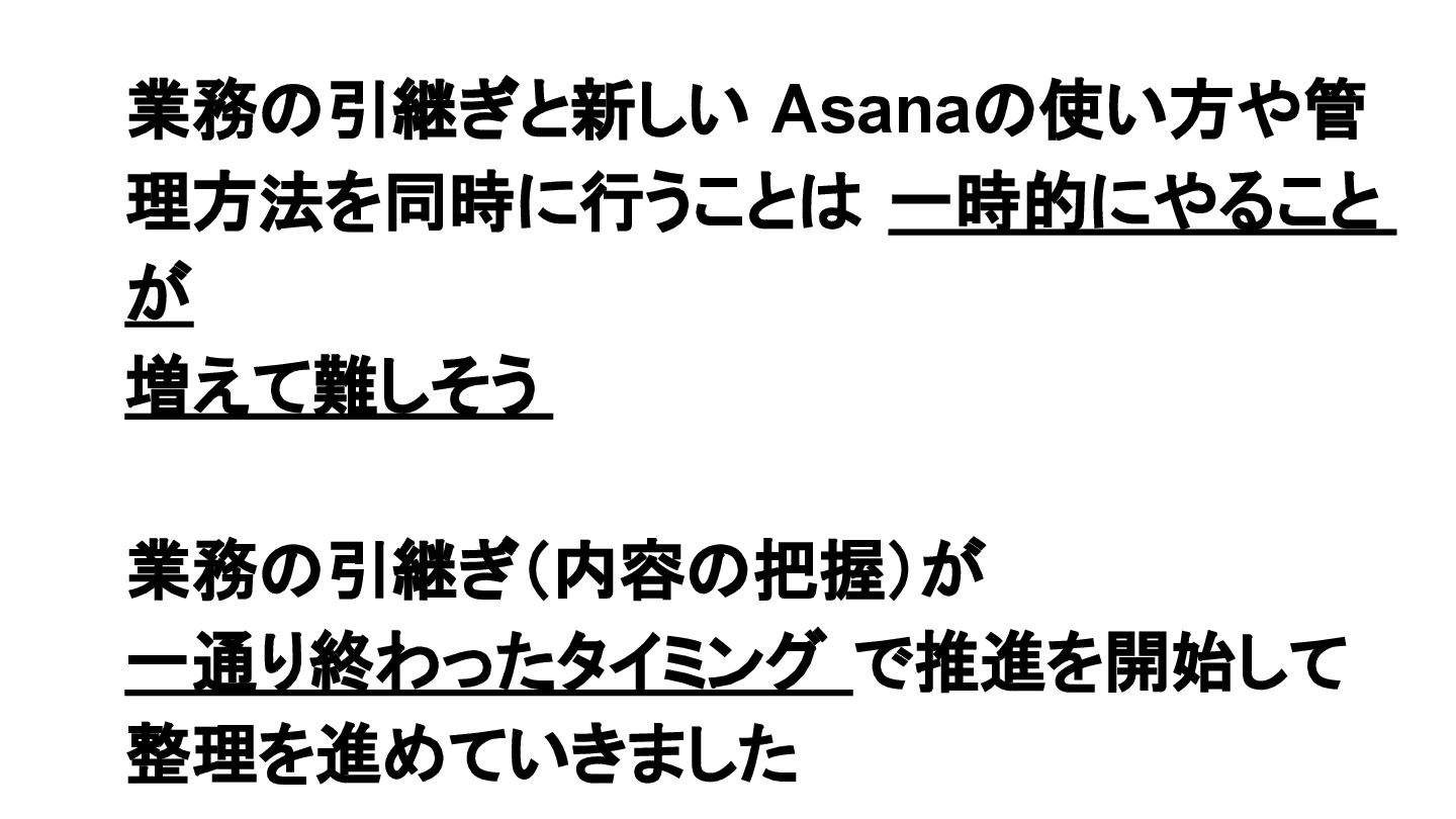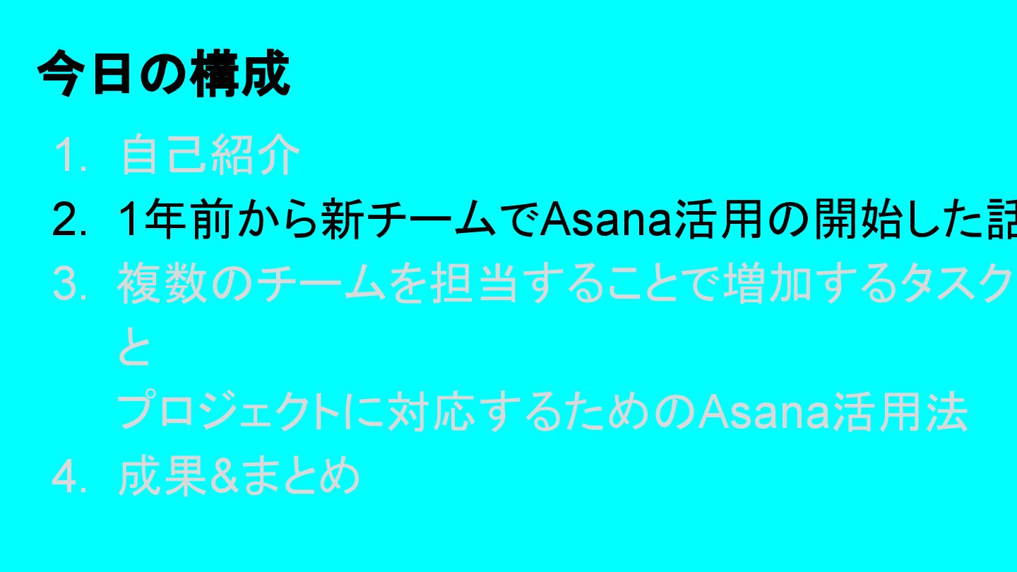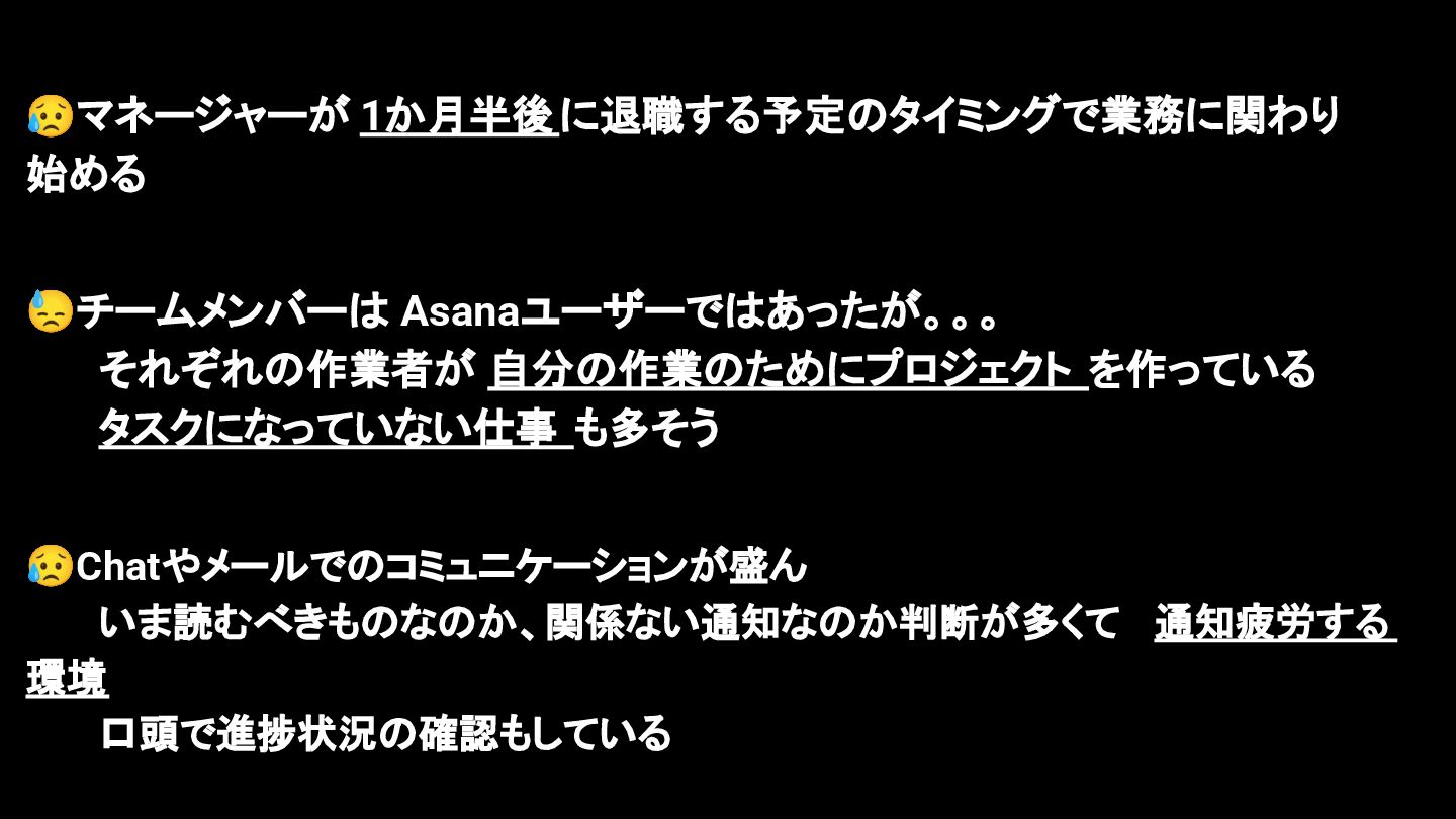2025年05月13日(火)に開催されたイベント Asana AI Studio〜人間とAIが共創する新しい働き方 2025〜 で Asanaの導入プロセスや作業の自動化や効率化やその成果 などを紹介しました そのスライドを全公開です。 イベント当日の様子は記事になっています。 https://www.work-management.jp/blog/improved-productivity-across-multiple-teams