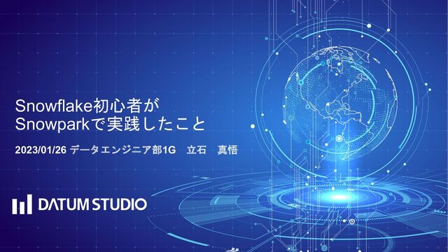 0 Snowflake初心者が Snowparkで実践したこと 2023/01/26 データエンジニア部1G 立石 真悟
