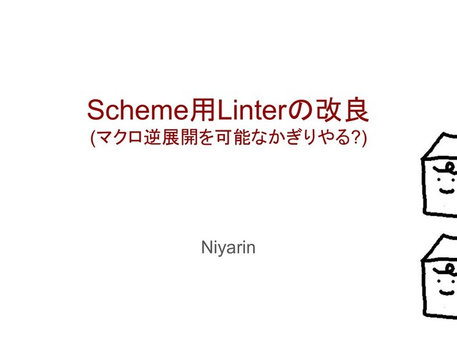 Scheme用Linterの改良 (マクロ逆展開を可能なかぎりやる?) Niyarin