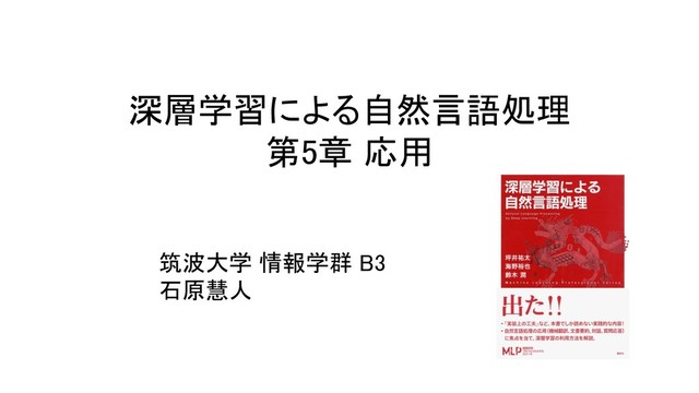 深層学習による自然言語処理 第5章 応用 筑波大学 情報学群 B3 石原慧人
