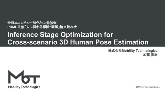 推定された 3D pose をランダムに回転、射影して得られた 2D pose に対し、 射影して得られた 2D pose であるか判定する discriminator を用いて adversarial loss を適用 ▪ カメラ視点を方位角 [-π, π]、仰角 [-π/9, π/9] からサンプリングして姿勢を回転 ISO-Adversary 2D pose lift rotate & project adversarial loss 3D pose 2D pose D. Drover, R. MV, C. H. Chen, A. Agrawal, A. Tyagi, C. P. Huynh, “Can 3d pose be learned from 2d projections alone?,” In ECCVW, 2018.