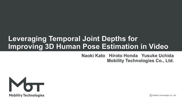 Naoki Kato, Hiroto Honda, Yusuke Uchida, "Leveraging Temporal Joint Depths for Improving 3D Human Pose Estimation in Video," In GCCE 2020.