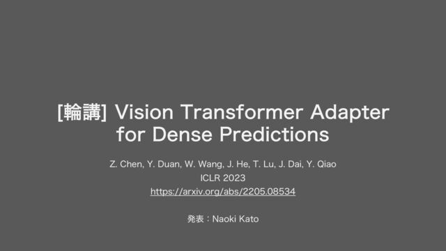Vision Transformerに視覚的帰納バイアスを注入することで密予測タスクへ効率的に適応させる手法である、ViT-Adapterについての輪講資料です。