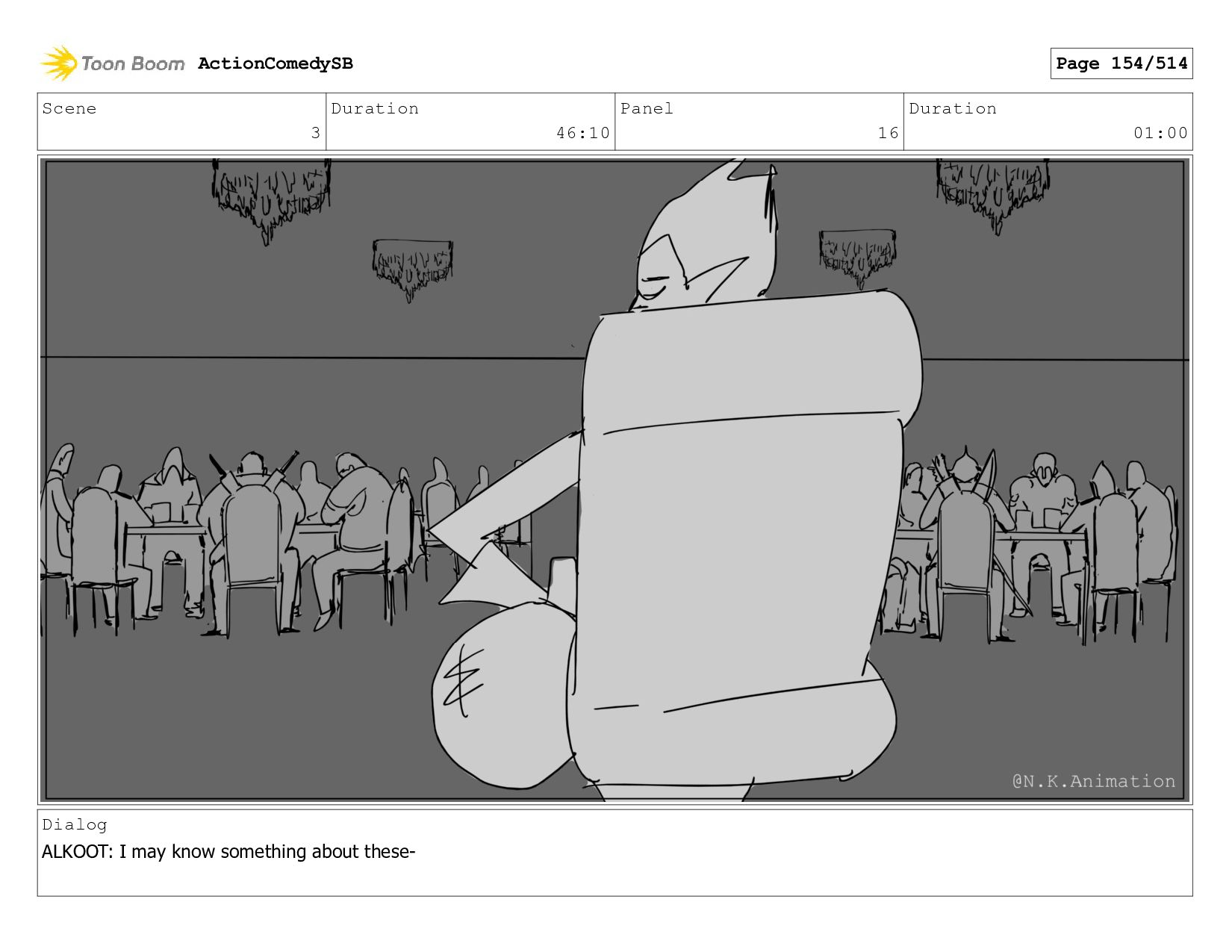 Scene 8 Duration 13:00 Panel 24 Duration 00:12 Dialog ALKOOT: