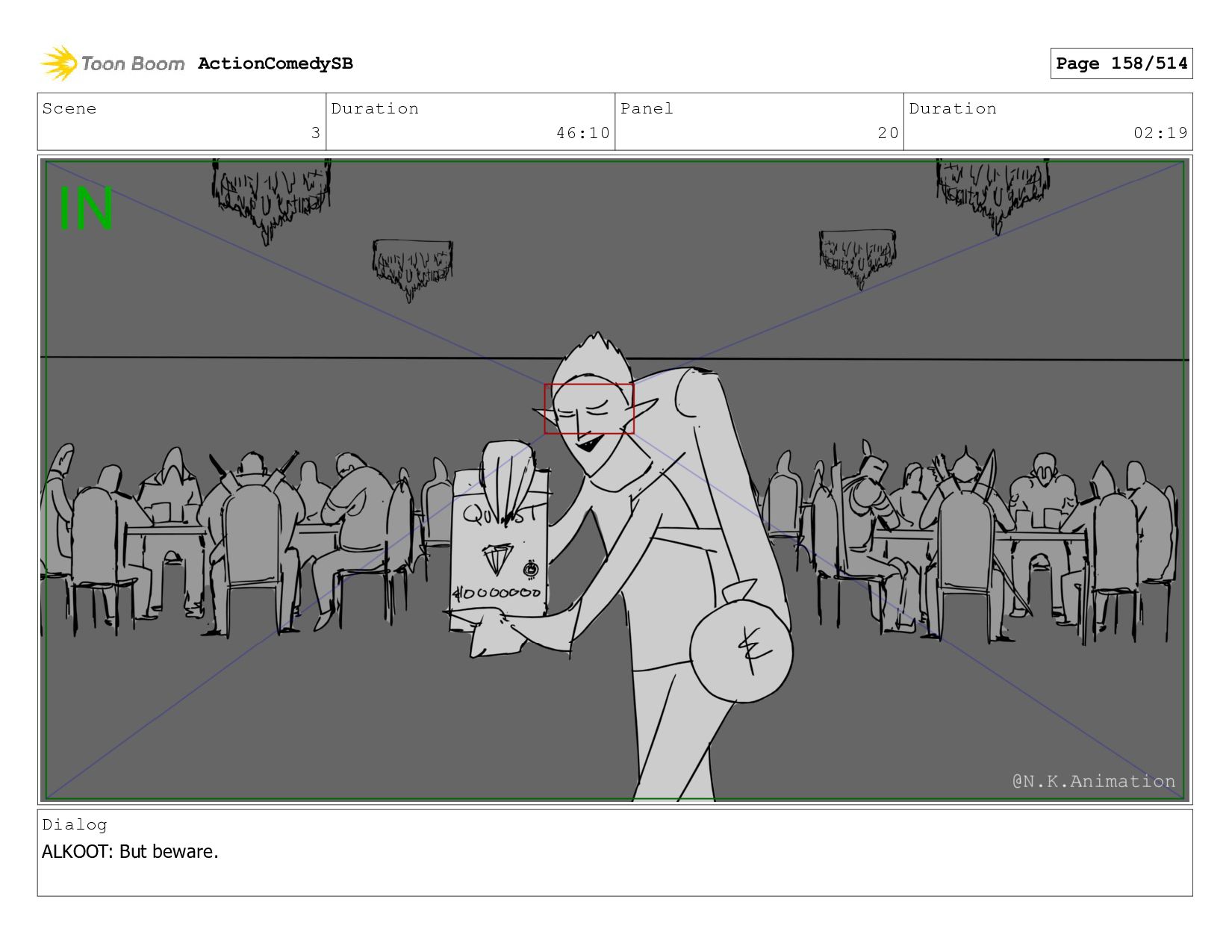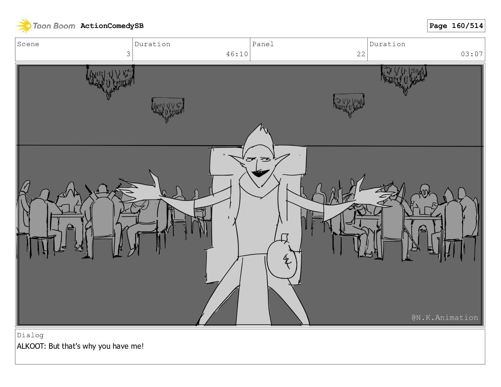 Scene 8 Duration 13:00 Panel 23 Duration 00:12 Dialog ALKOOT: