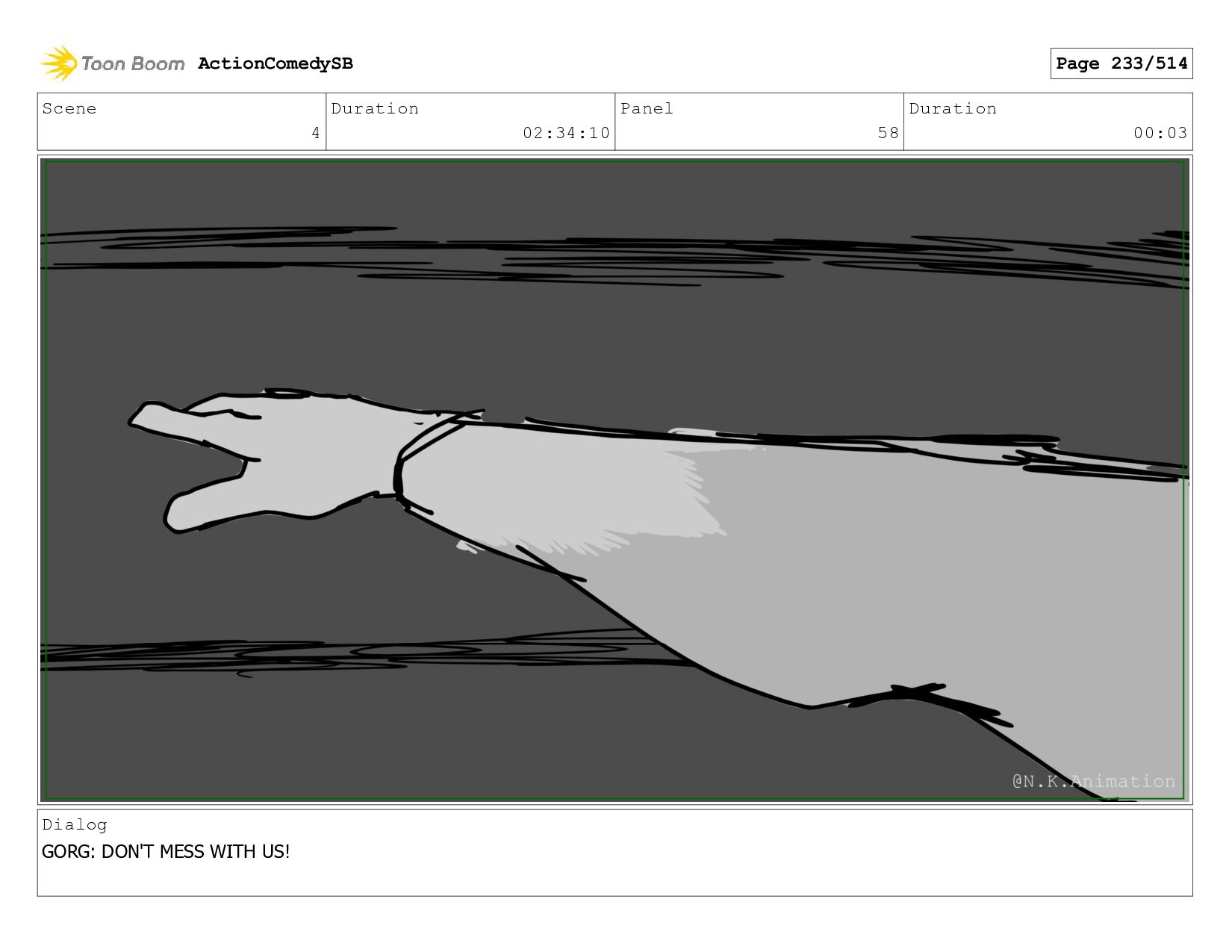 Scene 9 Duration 33:01 Panel 34 Duration 01:00 ActionComedySB Page