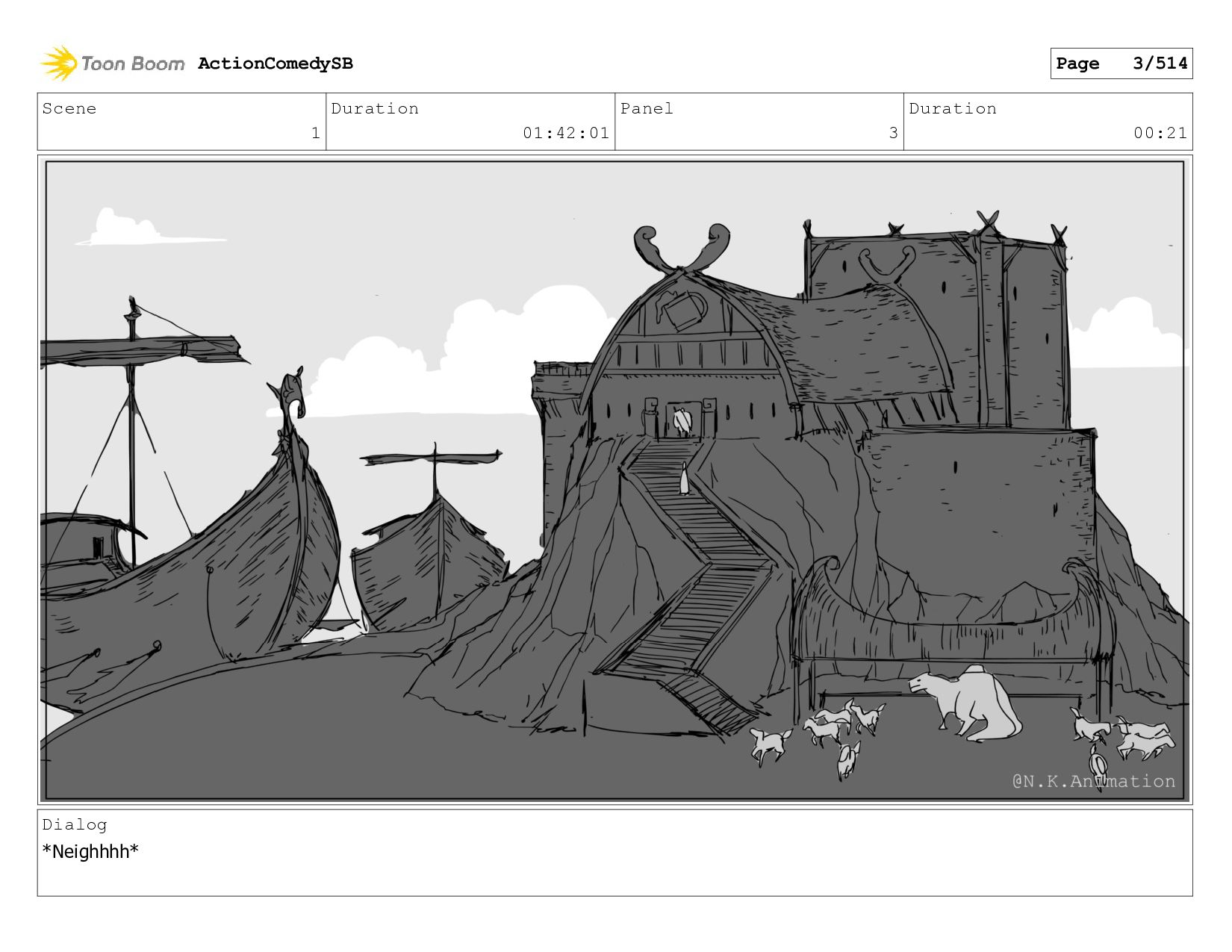 Scene 1 Duration 01:42:01 Panel 3 Duration 00:21 Dialog *Neighhhh*