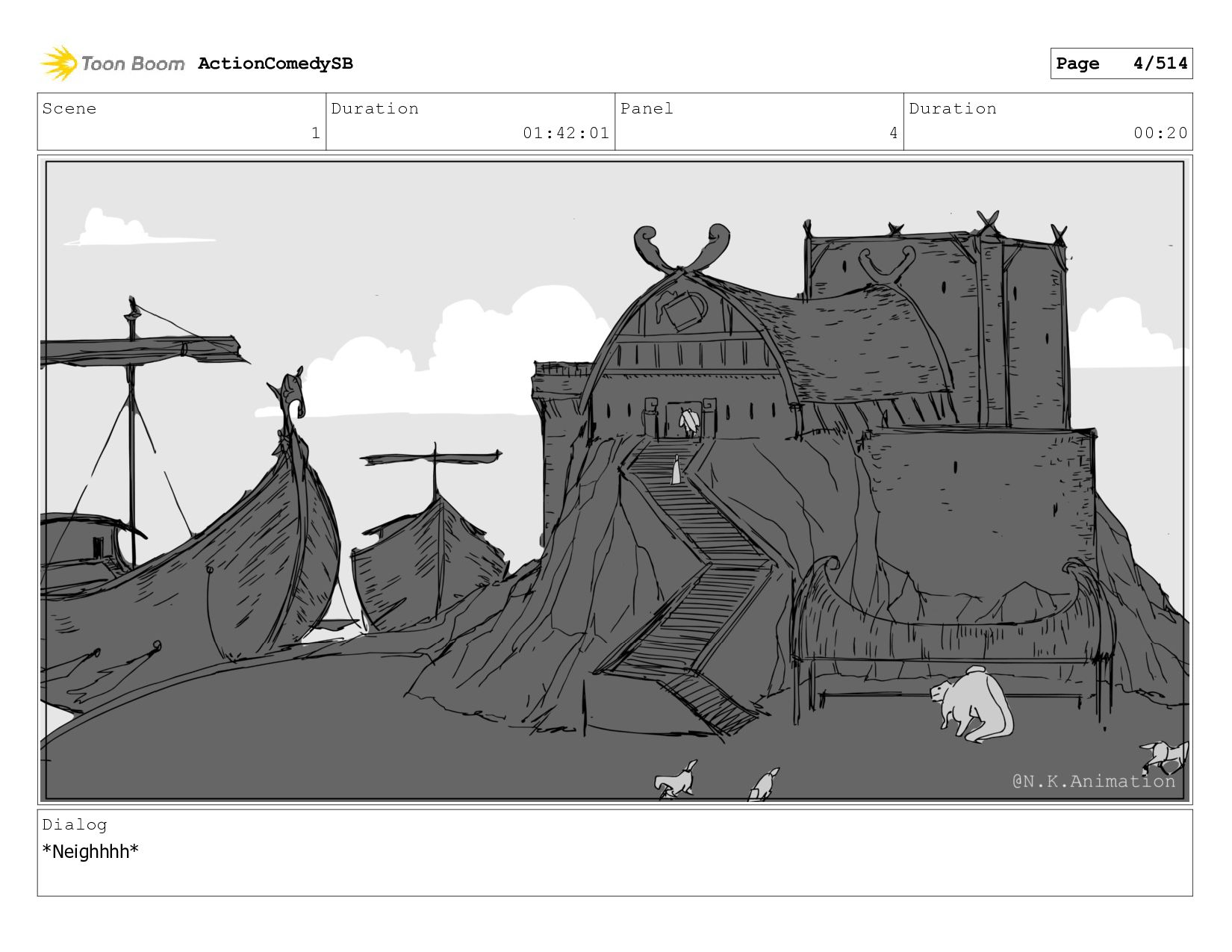 Scene 1 Duration 01:42:01 Panel 4 Duration 00:20 Dialog *Neighhhh*