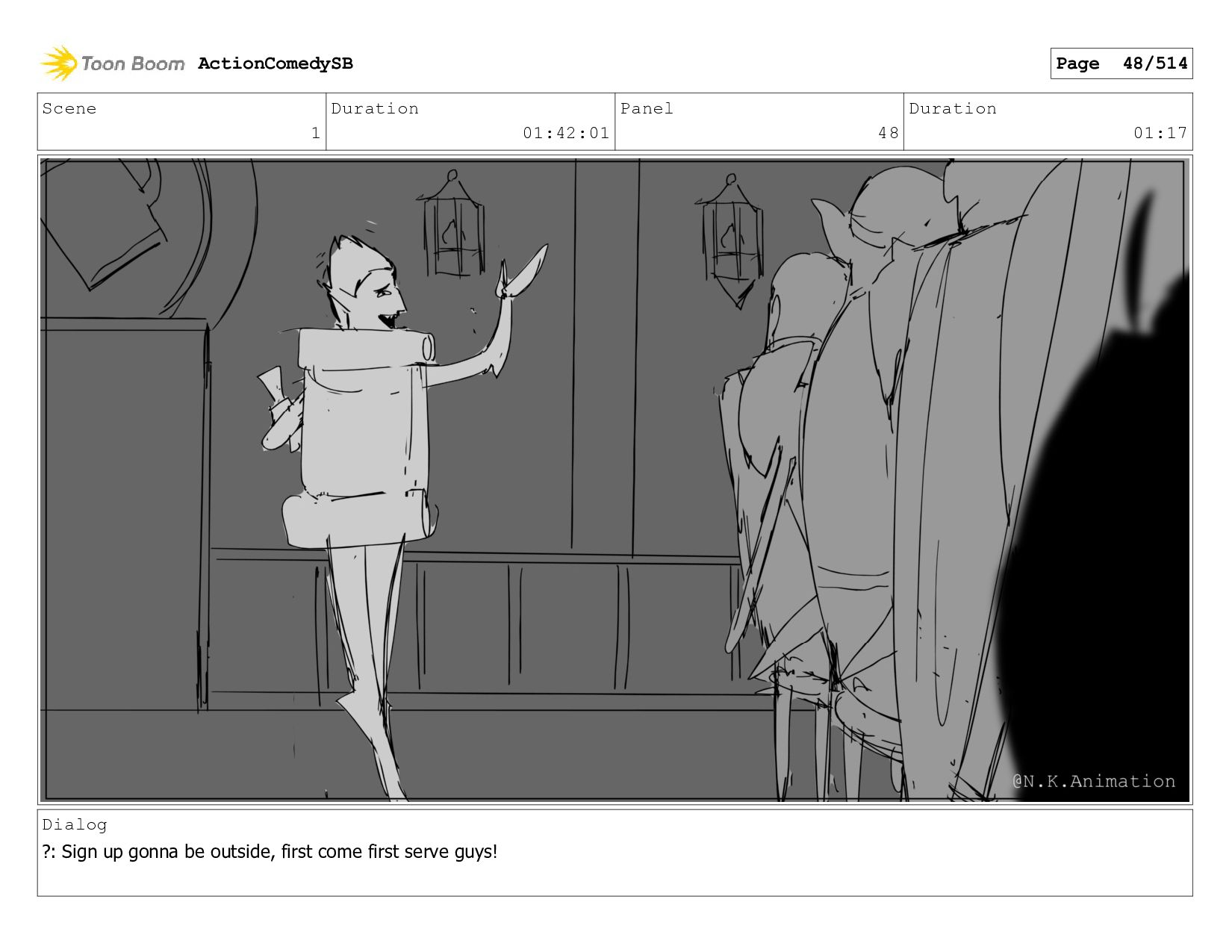Scene 1 Duration 01:42:01 Panel 1 Duration 02:17 ActionComedySB Page