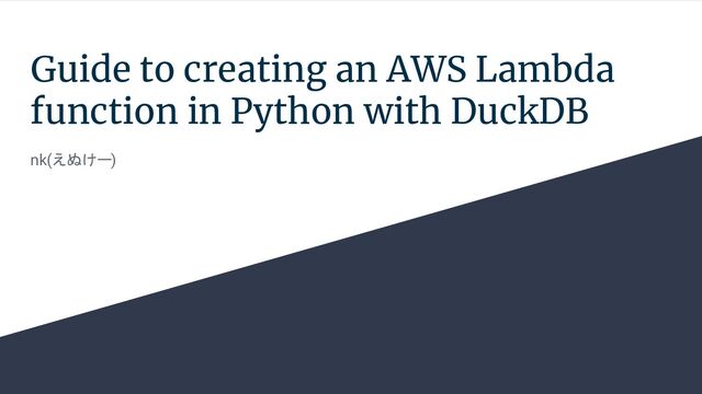 examples of using DuckDB with AWS Lambda to perform SQL operations on S3. (Instead of AWS Athena) However, there is no article using Lambda function in Python with duckdb.