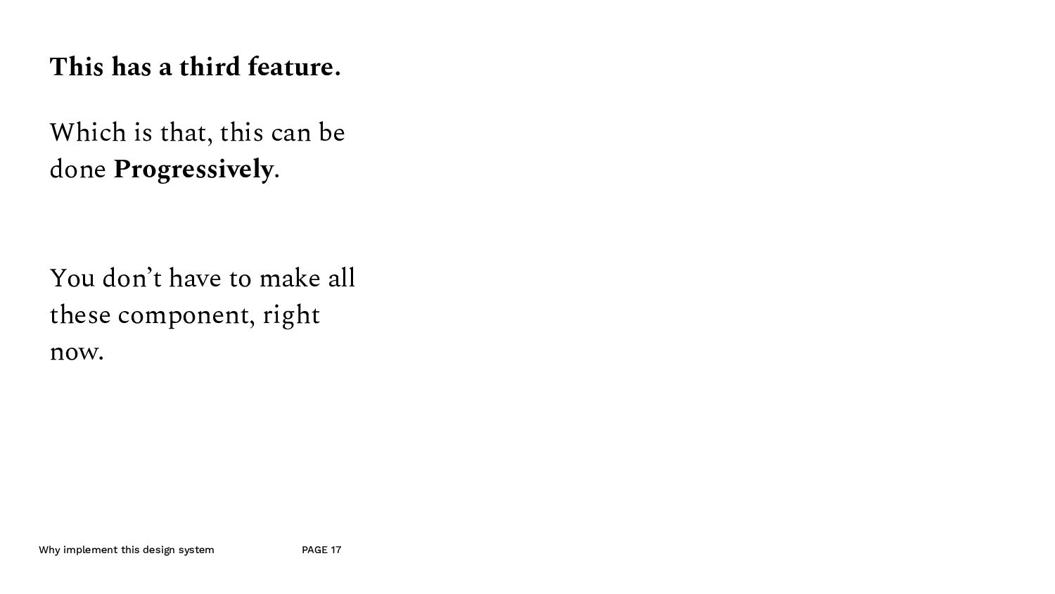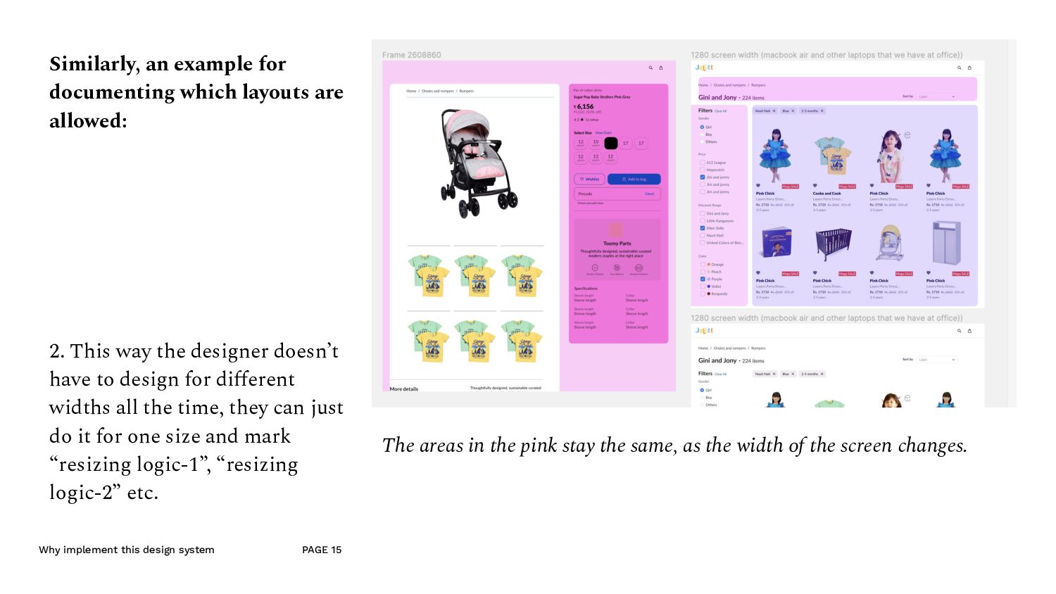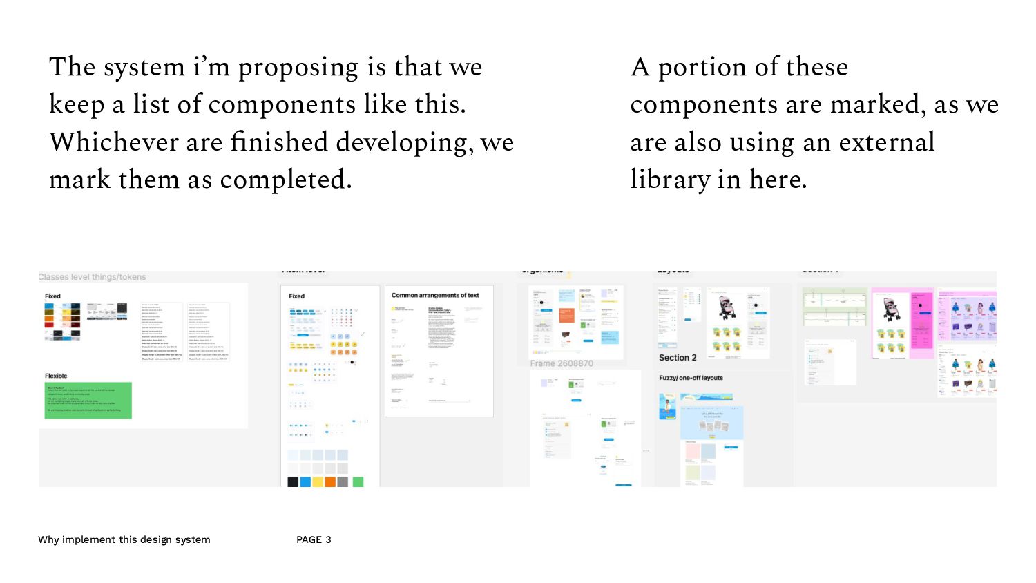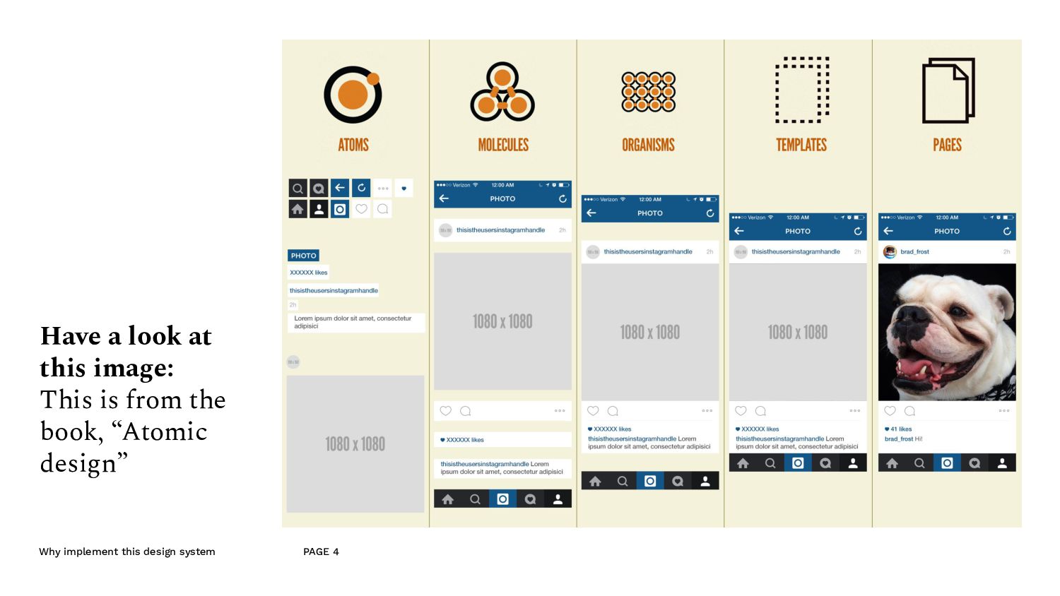 an example A component made for the listing page. - Since this is quite an important component of the website, we don’t mind if a lot of developer time goes into this. - So the designer can put this into the molecule section of the design system, — i.e. it’s ok, if it’s not made out of reusable components. - And because this is in the molecule section, the developer, looks at this and understand that they’ll have to make this out of the atomic elements. (like the typography and and image etc.)