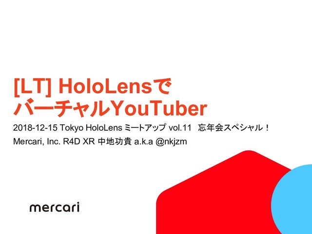 [LT] HoloLensで バーチャルYouTuber 2018-12-15 Tokyo HoloLens ミートアップ vol.11 忘年会スペシャル! Mercari, Inc.