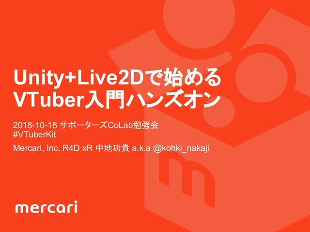 Unity+Live2Dで始める VTuber入門ハンズオン 2018-10-18 サポーターズCoLab勉強会 #VTuberKit Mercari, Inc. R4D xR 中地功貴